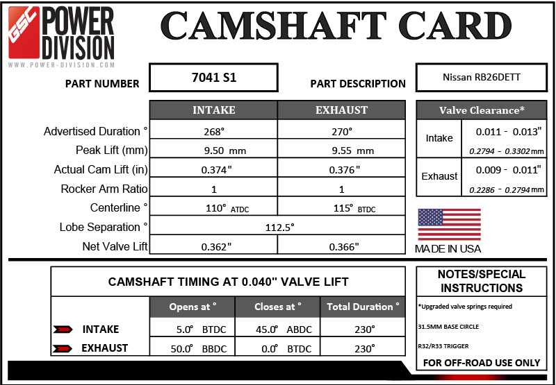 GSC Power-Division Billet S1 camshaft set for Nissan RB26DETT