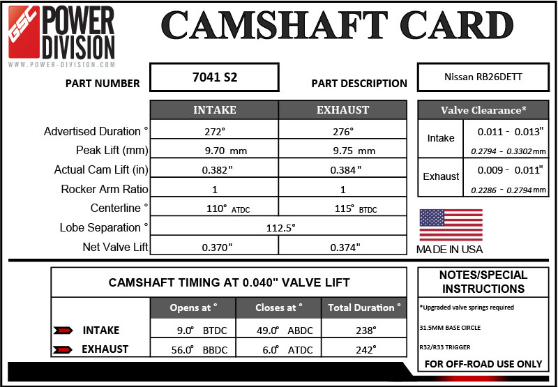 GSC Power-Division Billet S2 camshaft set for Nissan RB26DETT