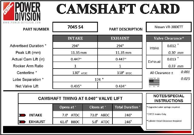 GSC Power-Division Billet S4 camshaft set for Nissan VR38DETT GT-R