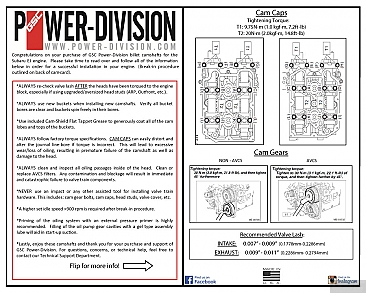 - Due to the lobe size, head castings will need to be filled down slightly for clearance - Please check during install