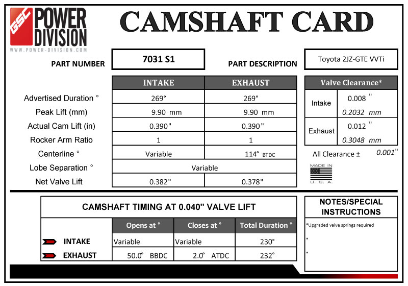 GSC Power-Division Billet VVTI 2JZ-GTE S1 Camshafts