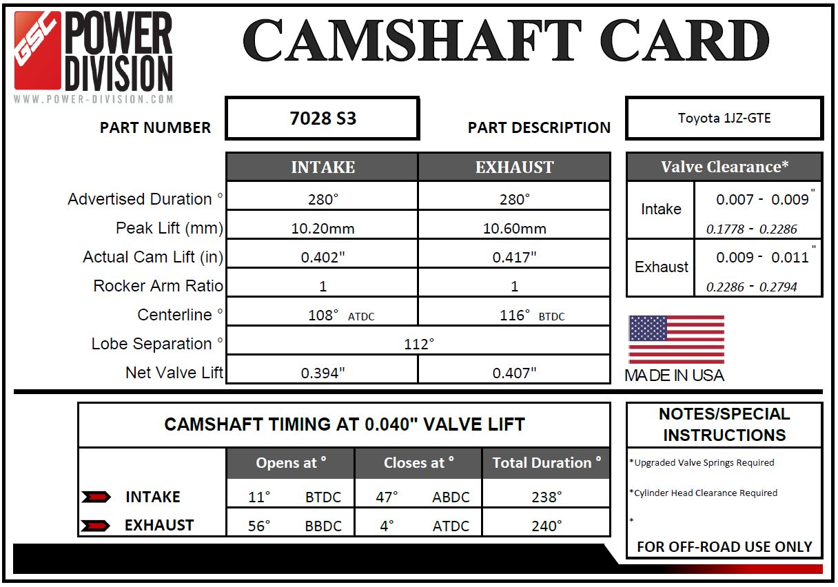 GSC Power-Division Billet 1JZ-GTE S3 Camshafts