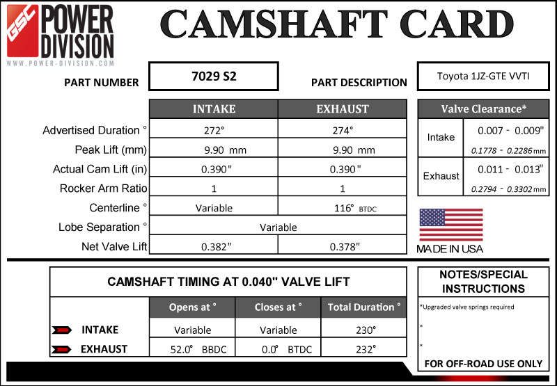 GSC Power-Division billet S2 cams for the Toyota 1JZ-GTE VVTi.
