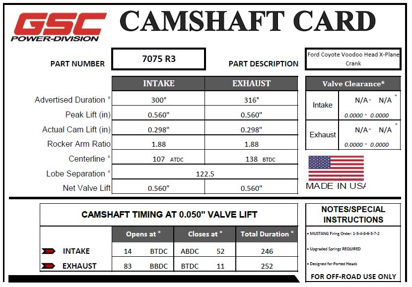 Camshaft Specifications – GSC R3 (Mustang Cross-Plane crank running Voodoo Head)